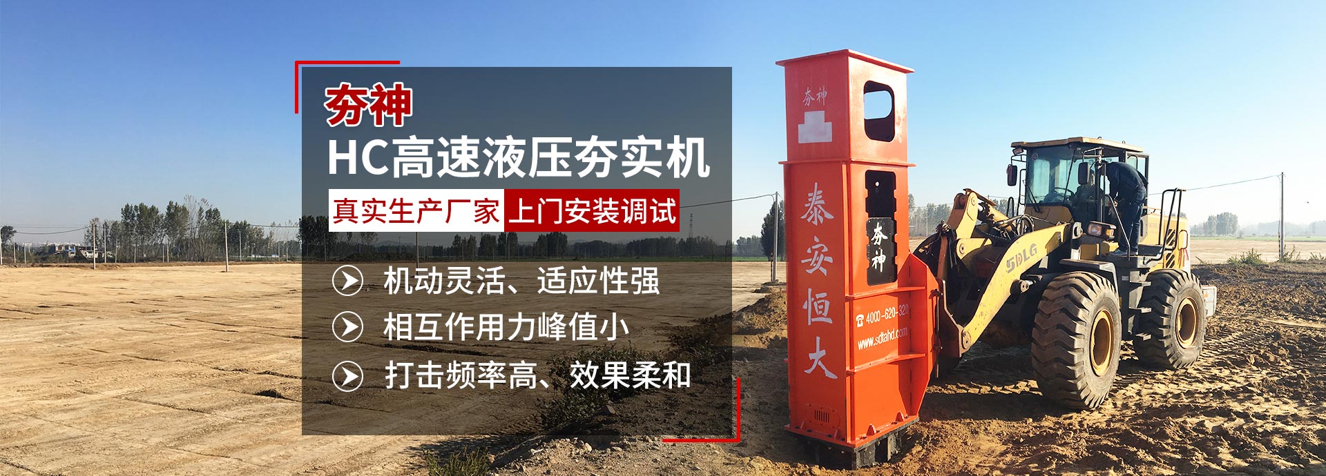 恒大機(jī)械租賃廠家主營(yíng)產(chǎn)品:高速液壓夯實(shí)機(jī),高速液壓打夯機(jī),挖掘機(jī)液壓夯,裝載機(jī)液壓夯,液壓銑挖機(jī),液壓打樁錘等產(chǎn)品,搭載安裝在3噸-70噸挖掘機(jī)